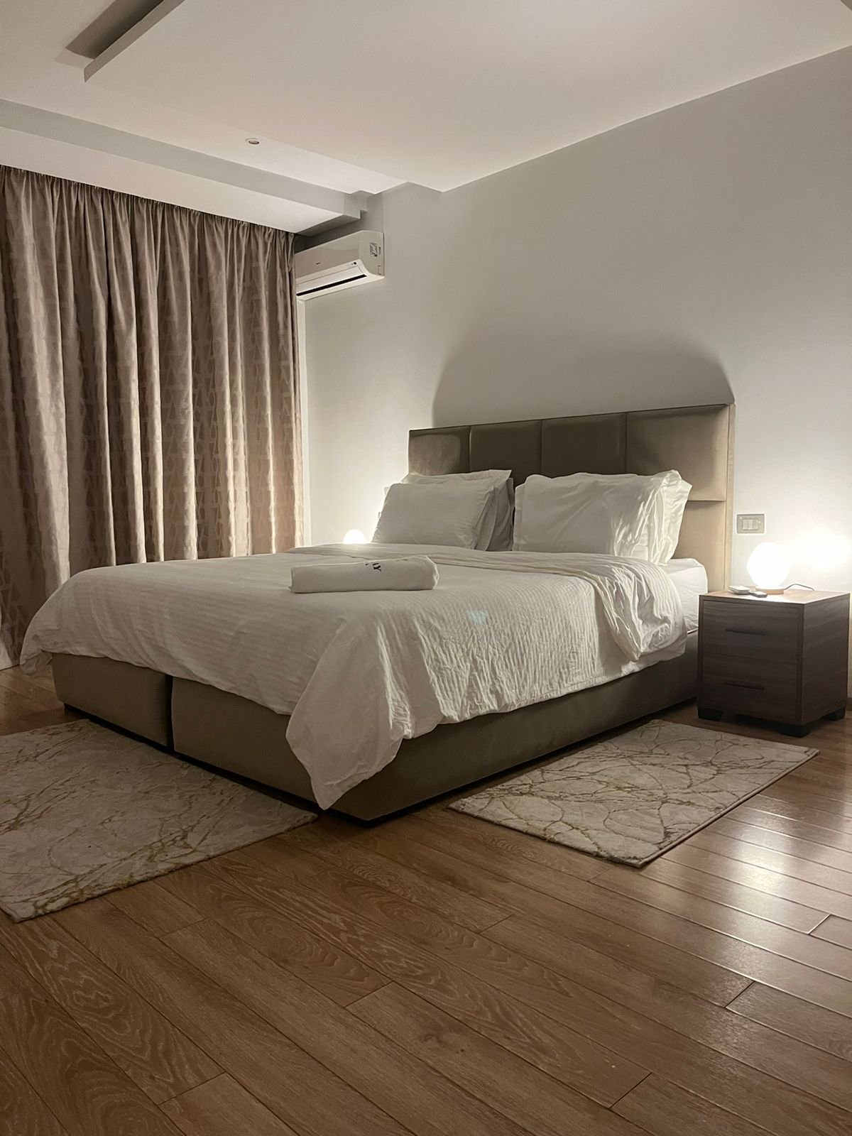 Spacious and elegantly designed, this three-bedroom apartment offers a refined stay in a calm and upscale neighborhood. Enjoy expansive terraces with stunning views, perfect for relaxation. The fully equipped kitchen, high-speed Wi-Fi, and air conditioning ensure maximum comfort. Ideally located near restaurants, cafés, and shops, this space is perfect for families, friends, or business travelers.